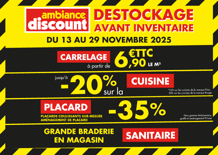 Toute l'année de vrais prix discount ! Le choix, le prix, le service ! CUISINE, SANITAIRE, CARRELAGE